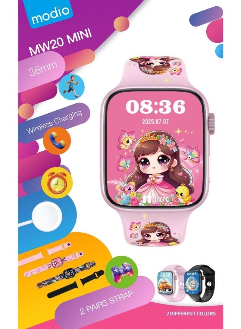 The MW20 Mini Kids Smartwatch combines fun, learning, and fitness in one compact and stylish wearable designed for children. With its 36mm colorful display, kids can easily interact with the watch to check time, set alarms, track steps, and explore simple educational features.
