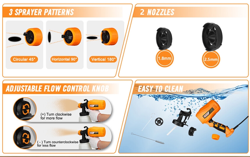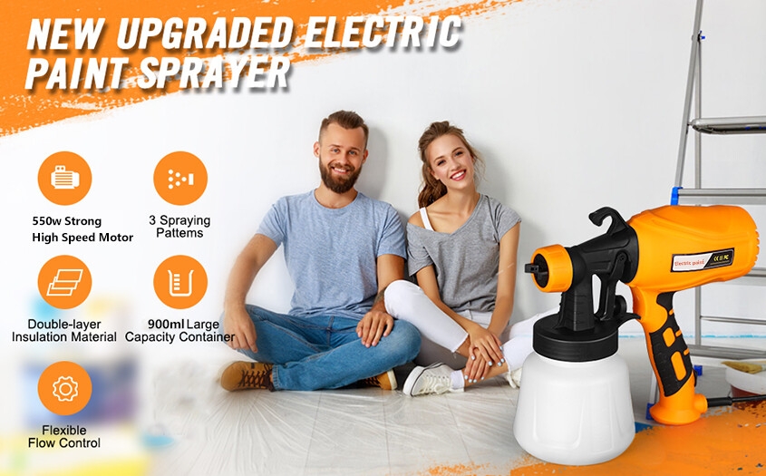 Upgrade your painting projects with this 550 W HVLP Electric Paint Sprayer. The powerful 550 W motor delivers fine atomization and fast coverage, making it ideal for walls, furniture, cabinets, fences, doors, garden chairs and more.