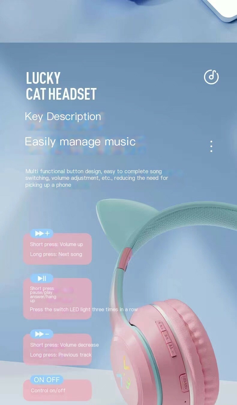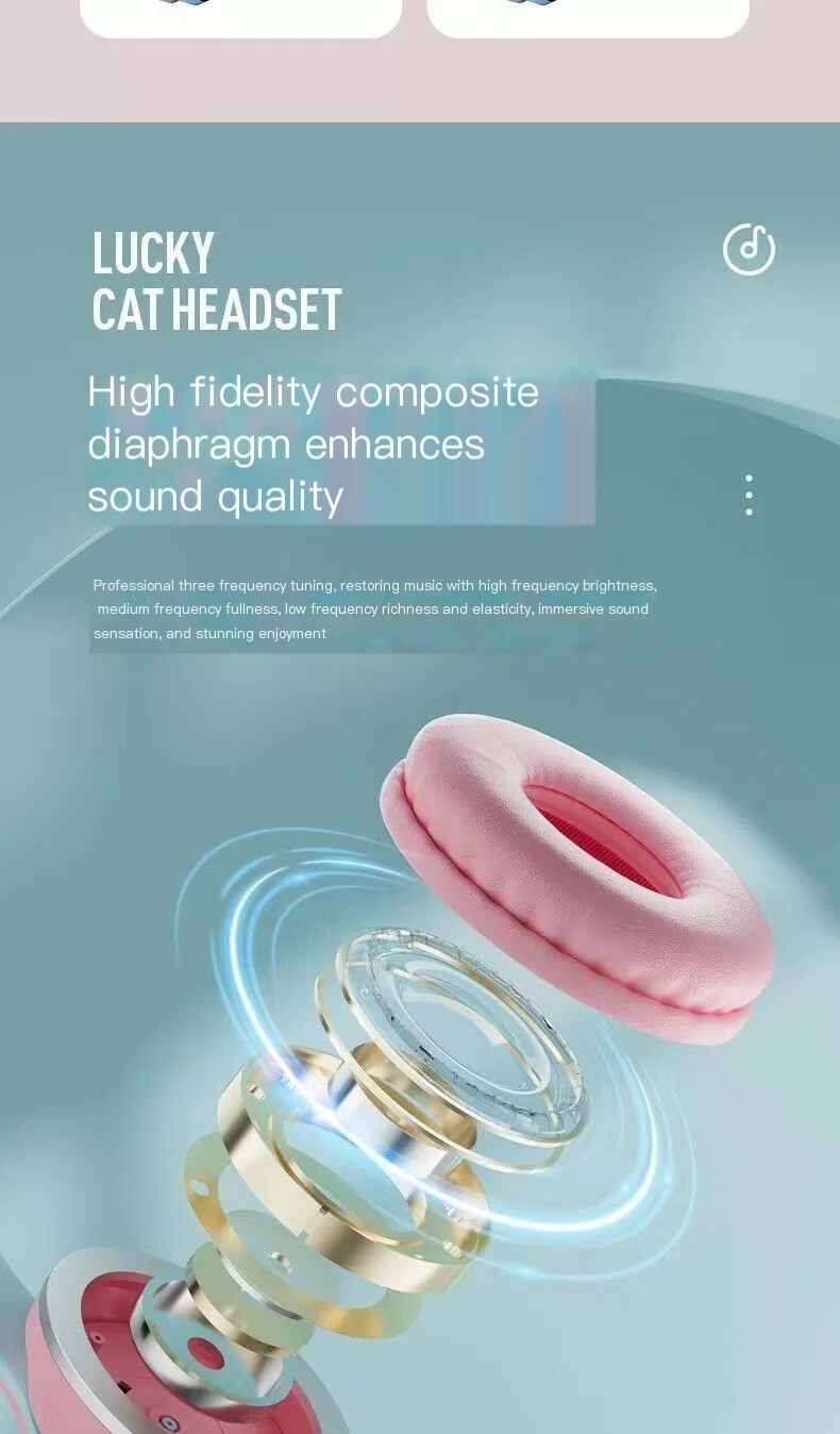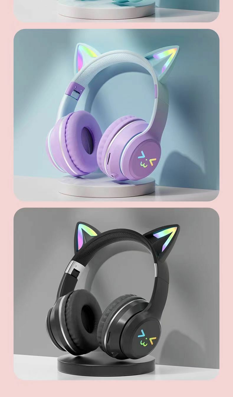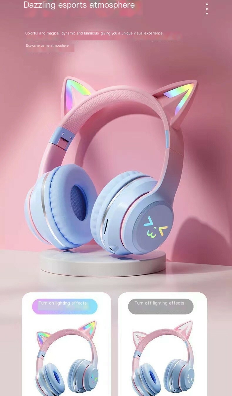 - Cat Ears Headphones with LED Glowing Lights over the ears Gaming Headphones Headset for Mobile Phone Pad Computer PC