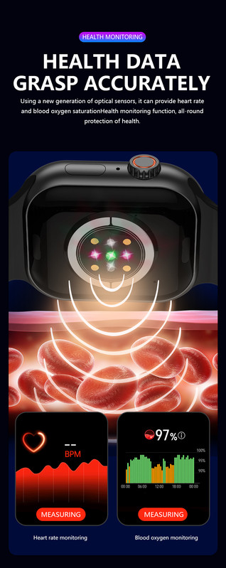 New-generation optical sensor, real-time monitoring of heart rate and blood oxygen saturation. Comprehensive health data tracking to protect user health.