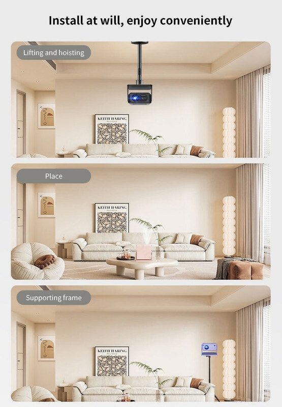 ✨180° flexible projection: Supports projection Angle adjustment, allowing the image to be projected onto different surfaces such as ceilings and walls, enabling you to enjoy the fun of a large screen in the most comfortable position (such as lying in bed).