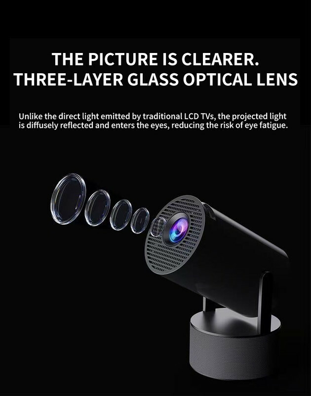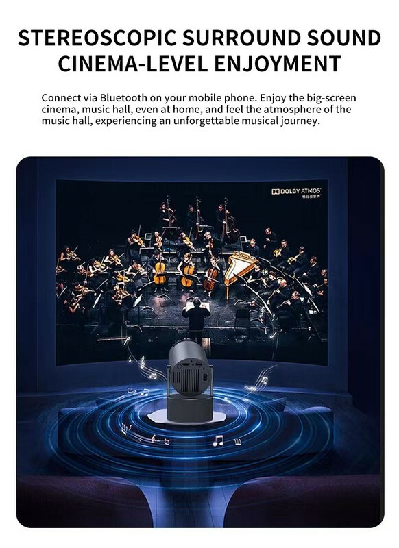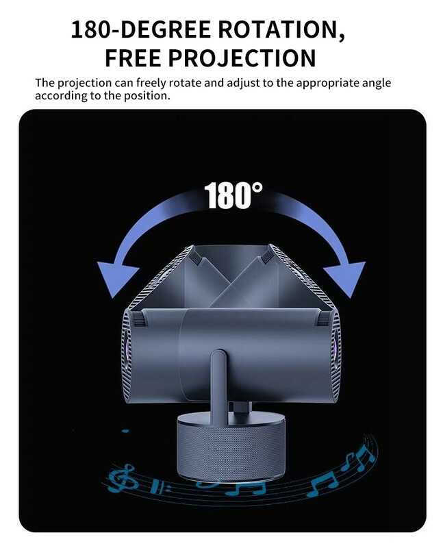 180° / 360° Hover Design: Unmatched flexibility! The integrated bracket allows the projector to rotate a full 360° horizontally and tilt for vertical adjustment. Place it on a table, shelf, or even the floor—get the perfect angle without any padding.