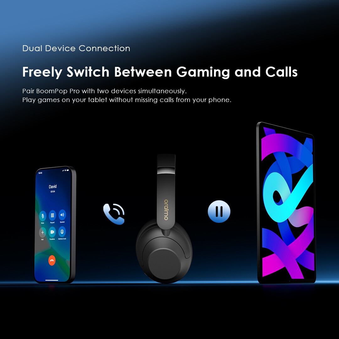 Pair Wireless Headphones with two devices simultaneously. Play games on your tablet without missing calls from your phone.