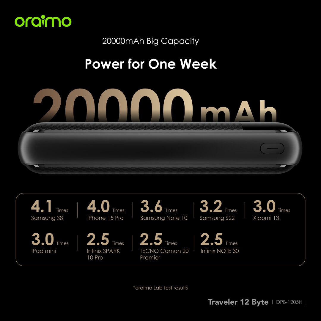 Never run out of juice! With the capacity to fully charge your phone up to 4 times, this oraimo Power Bank is your on-the-go energy source.