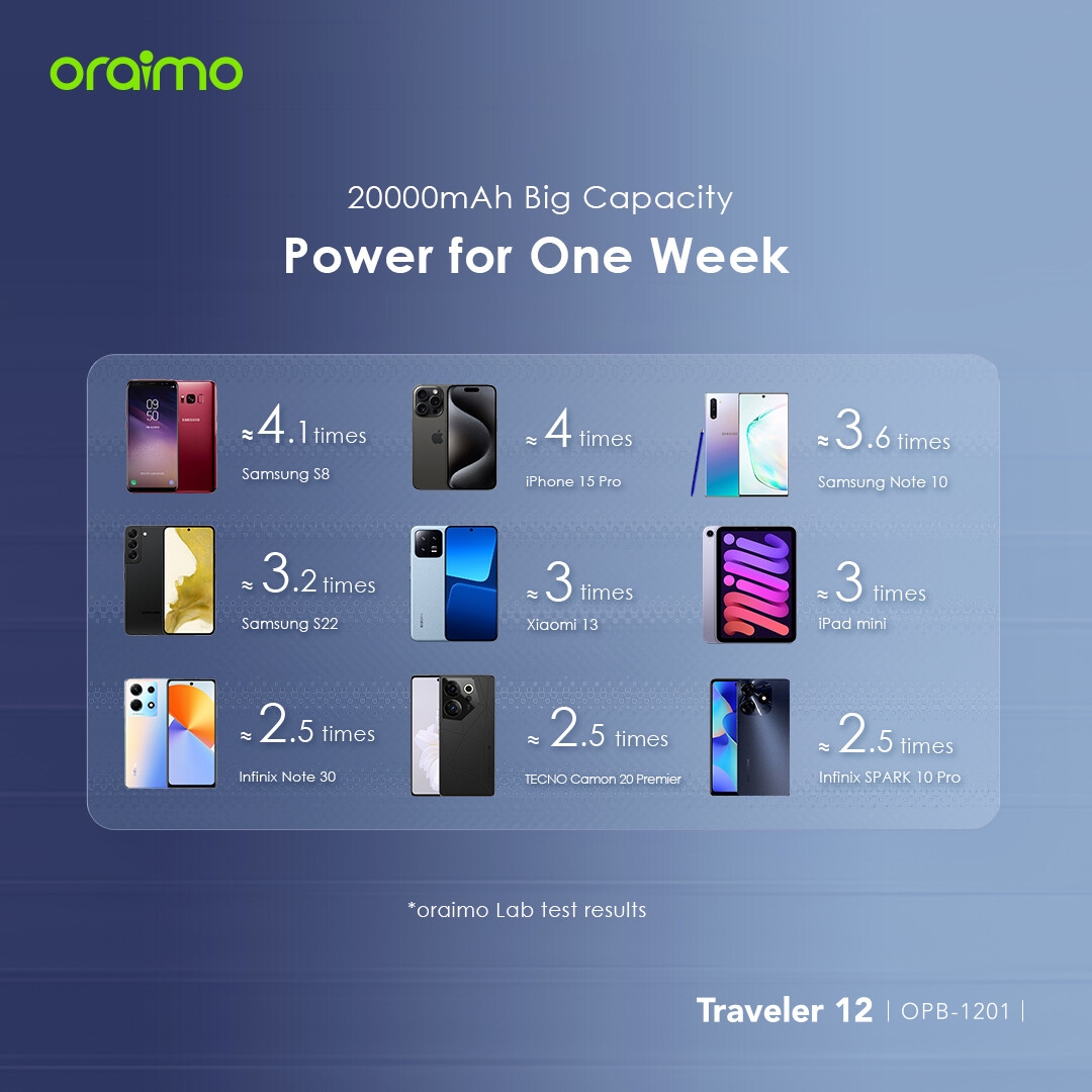 Never run out of juice! With the capacity to fully charge your phone up to 4 times, this oraimo Power Bank is your on-the-go energy source.