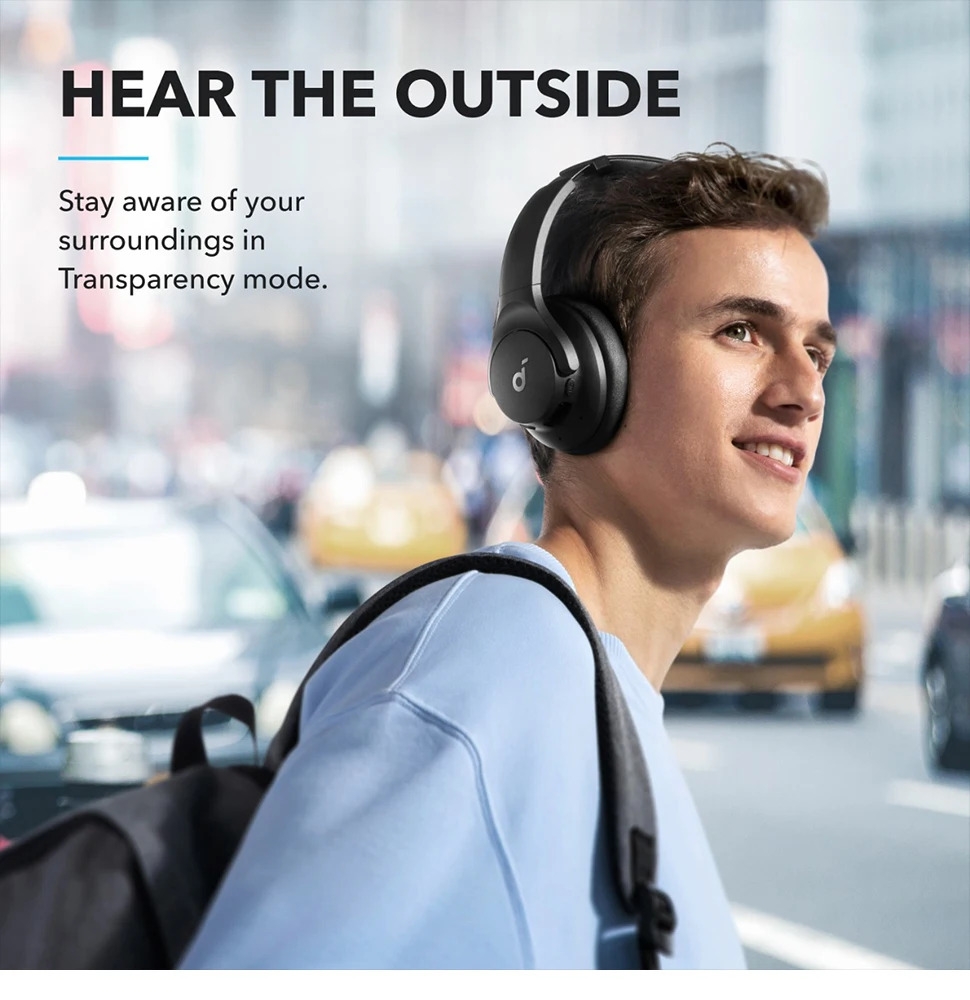 Switch between noise cancellation, normal, and transparency mode via a button or the soundcore app.