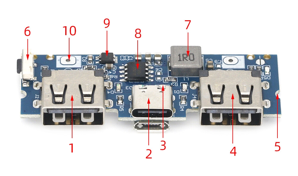 6. Do not add a protective plate to the battery. Some batteries are not originally used for power banks and have protection boards that limit the current, and may protect the output when exceeding one or two amps.