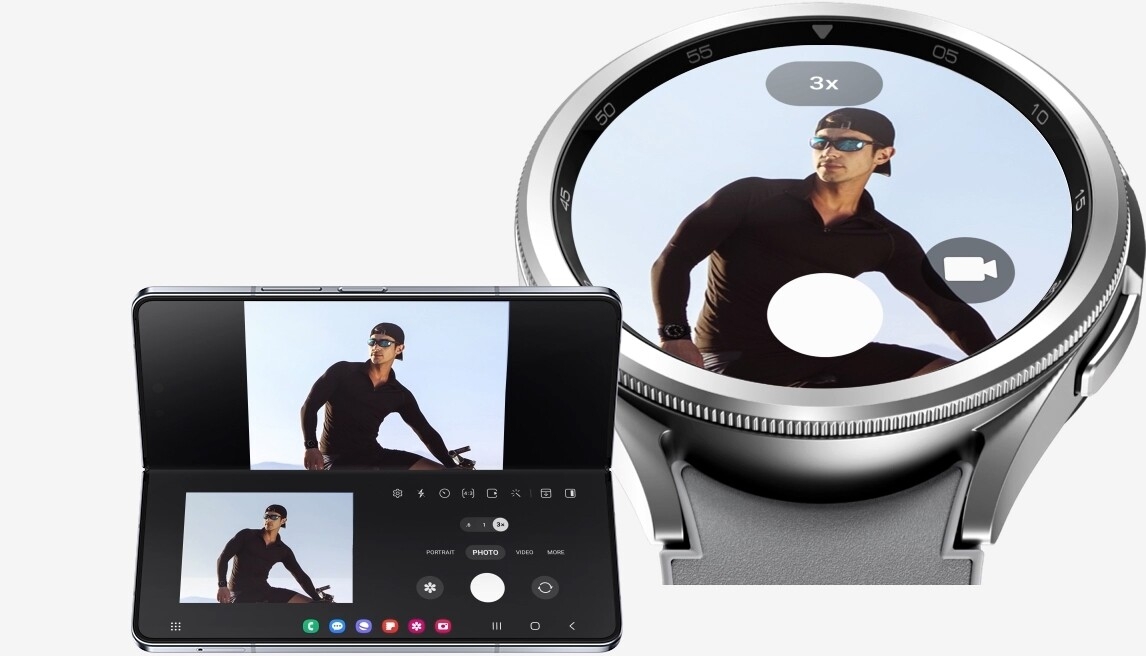 Frame and snap the shot you want. Simply open up the camera app on your Watch and pinch the screen or twist the bezel to zoom in and out. Then pose, set a timer or tap to snap a shot