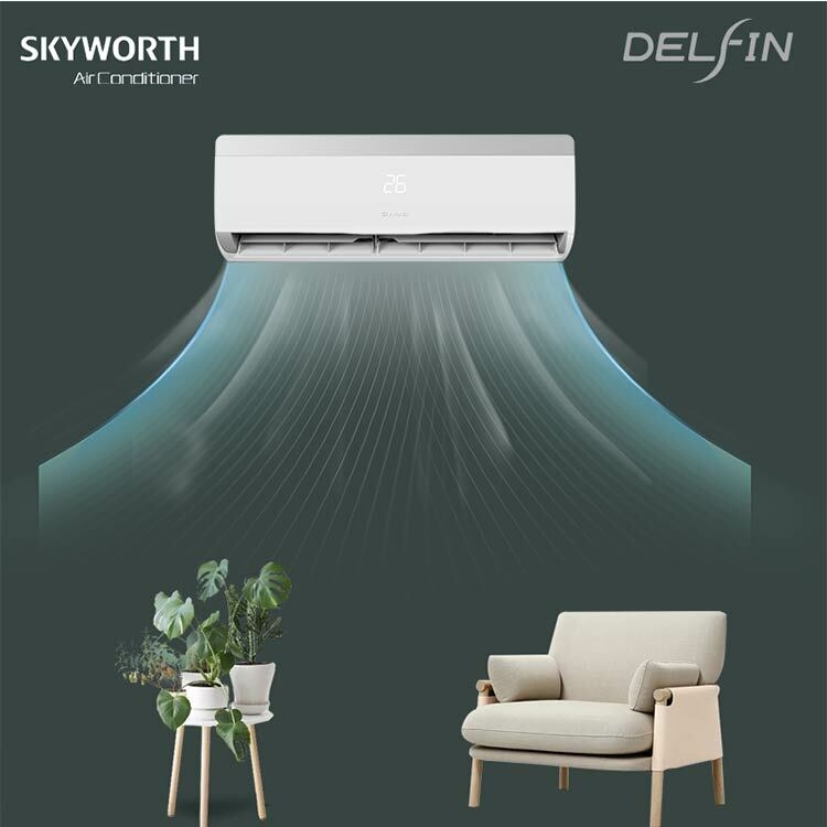 The Skyworth Delfin Series 9000 BTU air conditioner is a high-capacity cooling solution designed for larger spaces, such as spacious living rooms, large bedrooms, or office areas. This model combines robust performance with advanced features, making it an excellent choice for those seeking efficient and reliable cooling in more extensive environments.