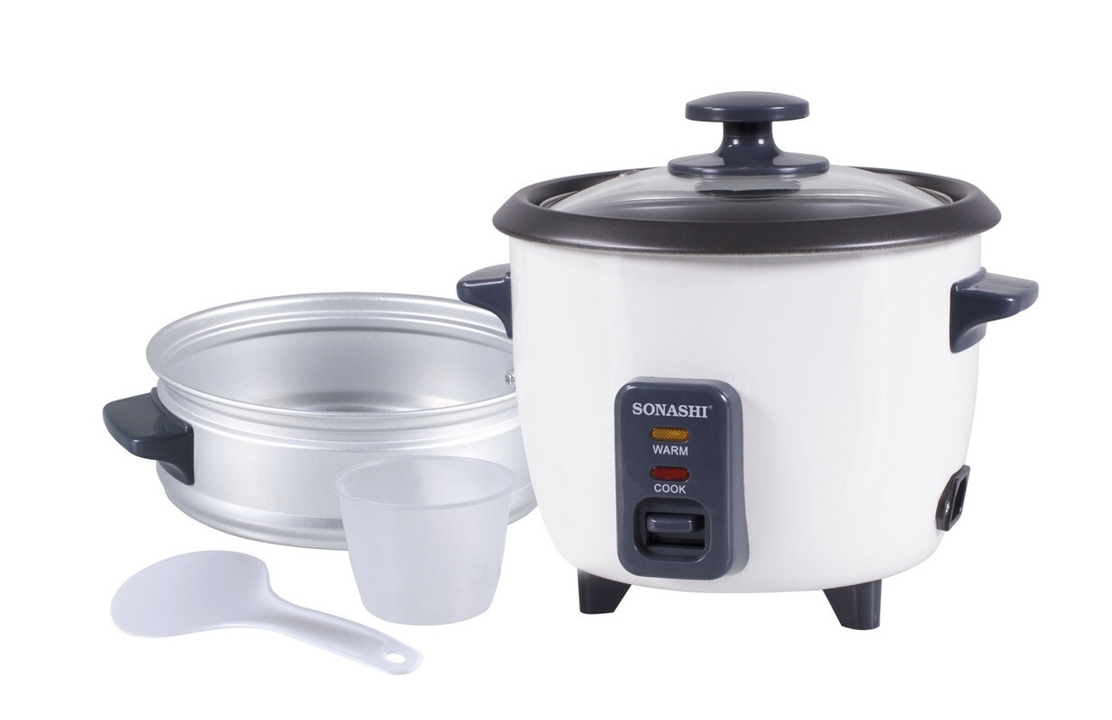 Elevate your cooking experience with the Sonashi Rice Cooker SRC328, a perfect fusion of functionality and style. Designed with a sturdy metal housing and featuring a transparent tempered glass lid, this rice cooker not only ensures durability but also adds a touch of sophistication to your kitchen countertop. The cool touch handle provides added safety, allowing you to handle the cooker with ease. The removable cooking pot with a non-stick coating inside makes cooking and cleaning effortless. With its automatic shut-off feature and cook and warm function, you can expect perfectly cooked rice every time, while keeping it warm until you're ready to serve. The included accessories, such as the aluminum steamer, measuring cup & spoon, make this 1.8L rice cooker a versatile addition to your kitchen arsenal. Operating at AC 220-240V ~ 50/60Hz 700W, this rice cooker is the epitome of convenience and efficiency, making it a must-have for any aspiring home chef.