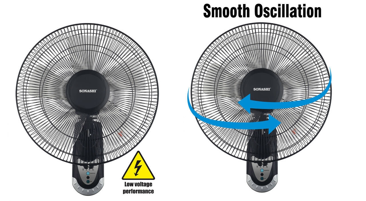 Enjoy unparalleled convenience and cooling comfort with the Sonashi Wall Fan SF-8070WR. This 16" fan comes with a remote control, allowing you to effortlessly control its settings from a distance. Choose between three modes to meet your specific cooling needs and take advantage of the 7.5 hours timer for a personalized experience. Safety is a priority, and this fan features automatic protection against overheating. The 5 PP transparent blades, paired with a Korea guard ring, provide efficient airflow with enhanced safety. Even better, the low noise copper motor ensures a quiet operation, creating a serene environment while you stay refreshed.