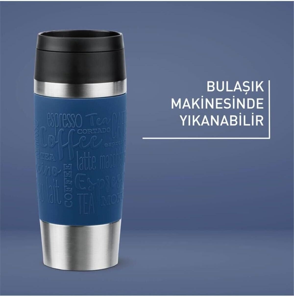 Tefal Travel Mug Classic, Comfort Screw Lid, Quick Press, Soft-Touch Sleeve, Travel-Ready, Reusable, 100% Leak-Proof, Keeps Drinks Cold (8 hrs) and Hot (4 hrs), 360° Drinking, N2020310-Blue