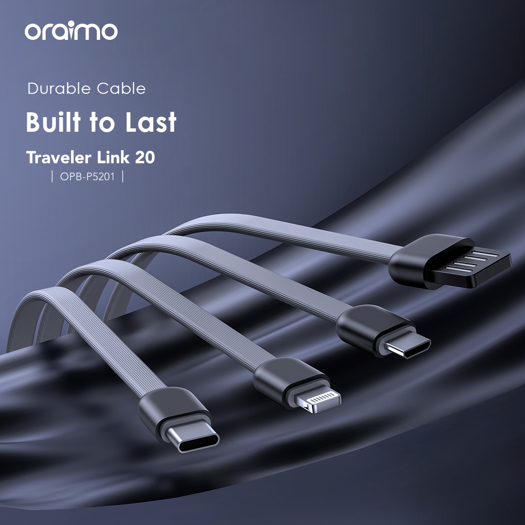 The Oraimo OPB-P5201 power bank boasts a substantial capacity of 20000mAh (74 Wh), ensuring ample power for multiple device charges. It features three input ports including Micro-USB (5V/2A), Type-C (5V/2A), and a USB-A cable (5V/2A), providing versatility in recharging options. On the output side, it offers four ports: USB-A (5V/2.4A), Micro-USB cable (5V/2.1A), Lightning cable (5V/2.1A), and Type-C cable (5V/2.1A), catering to a variety of device types. With a total maximum output of 5V/2.4A, this power bank ensures efficient charging for your devices, making it a reliable companion for on-the-go power needs.