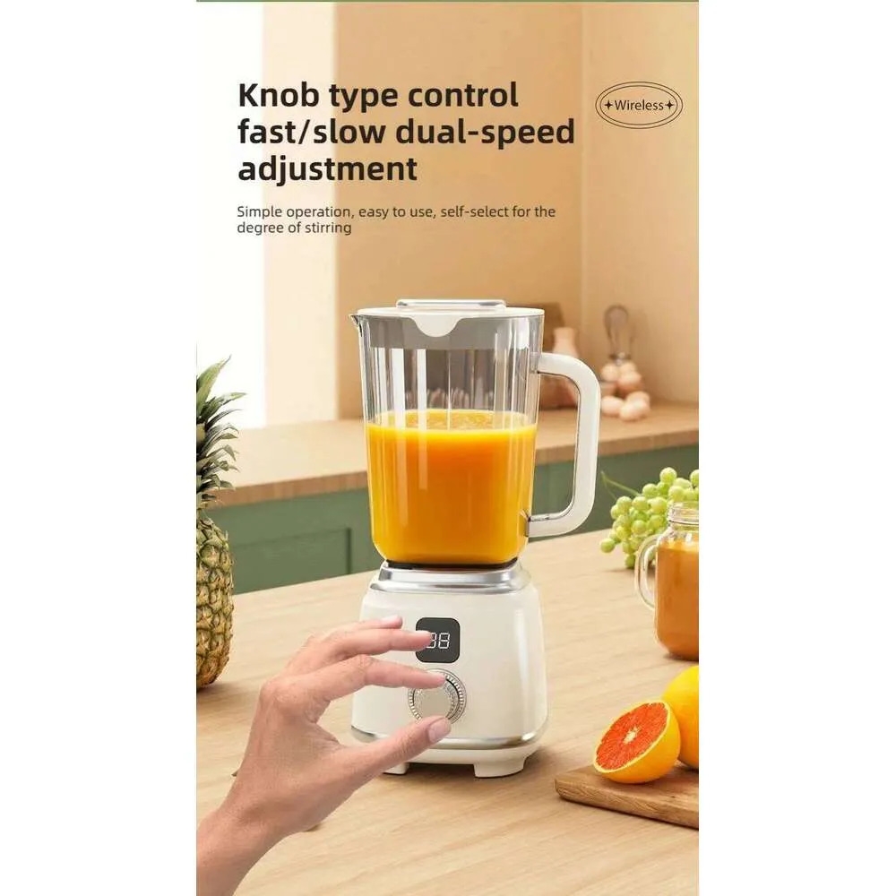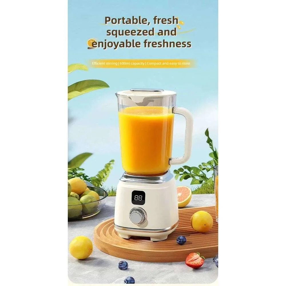 The image shows a portable blender with a digital display and USB rechargeable function, suitable for making smoothies, juices, and milkshakes. Features of this type of blender include: