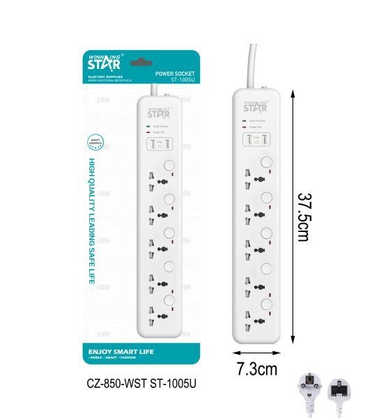 This a very effective high end power socket with a rated power of 2500watts. the socket is sold 1 piece but you will have to choose either one with 5 ac outlets and 2 usb ports or one with 4 ac outlets and 2 usb ports. it is designed with inbuilt surge protection to protect appliances from high voltages that may damage them. it has a power cable of 3 metres and conductive rate sheet copper material for the wires.buy this cable and protect your devices from unnecessary electric short ciruits and surges.